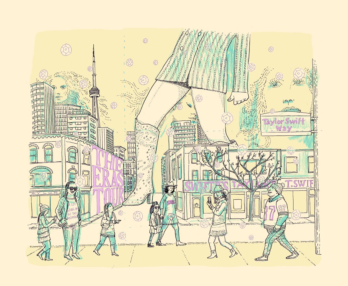 Make a rough collage from the images, in Photoshop. For the Taylor Swift drawing, some web-sourced images were also used.